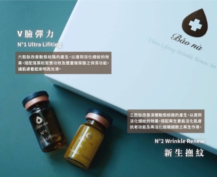 三胜肽改善深層動態紋路的產生,以達到淡化細紋的效果,搭配再生素能活化肌膚抗老功能及再活化組織細胞之再生作用。